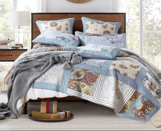 3pcs, 100% cotton, patchwork,Unique Style:Floral Paisley Grid Pattern with Real Stitched Embroidery on the front of whole bedspread.Beautiful versatile quilt creats a comfortable sleeping environment for good night rest