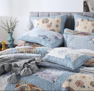 Good Quality Material:100% Cotton of Both Sides.It use Craftsmanship patchwork ,made of different pieces of individually printed floral cotton fabric that are sewn together.Specialized closed box double stitching of quilted bed cover keeps your filling uniform and prevents it from clumping and shifting after using and washing.Won’t ever feel heavy, stiff or uncomfortable.