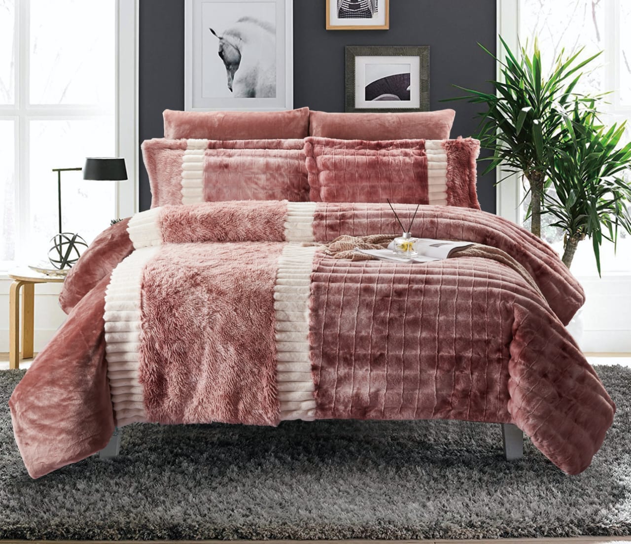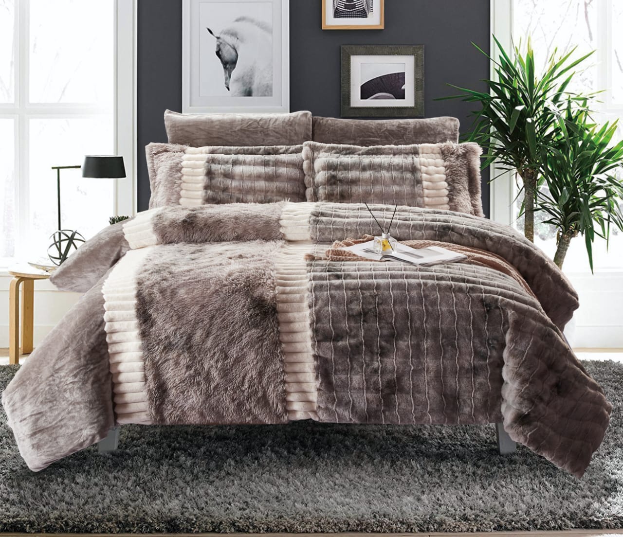 Faux rabbit fur comforter set