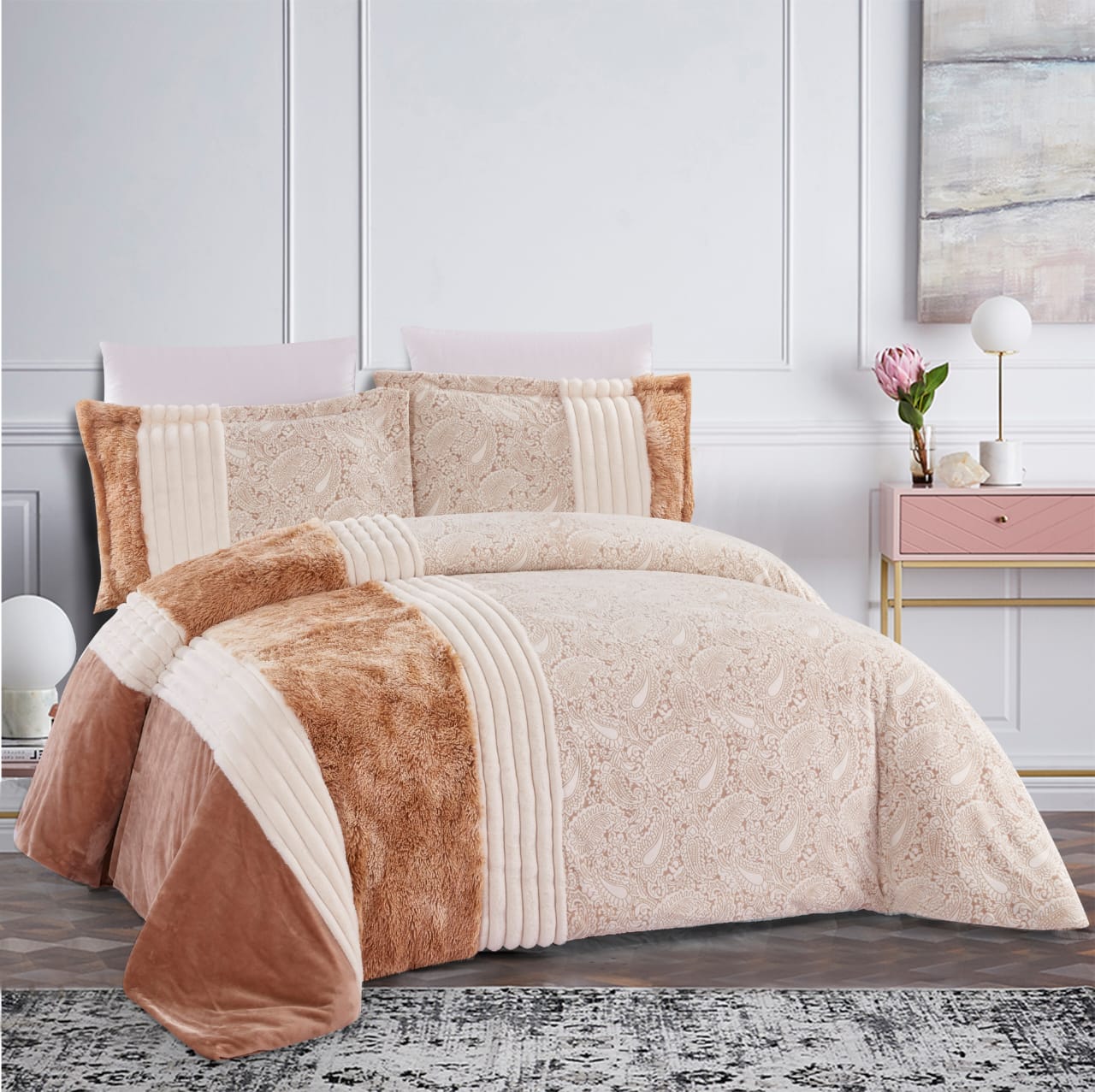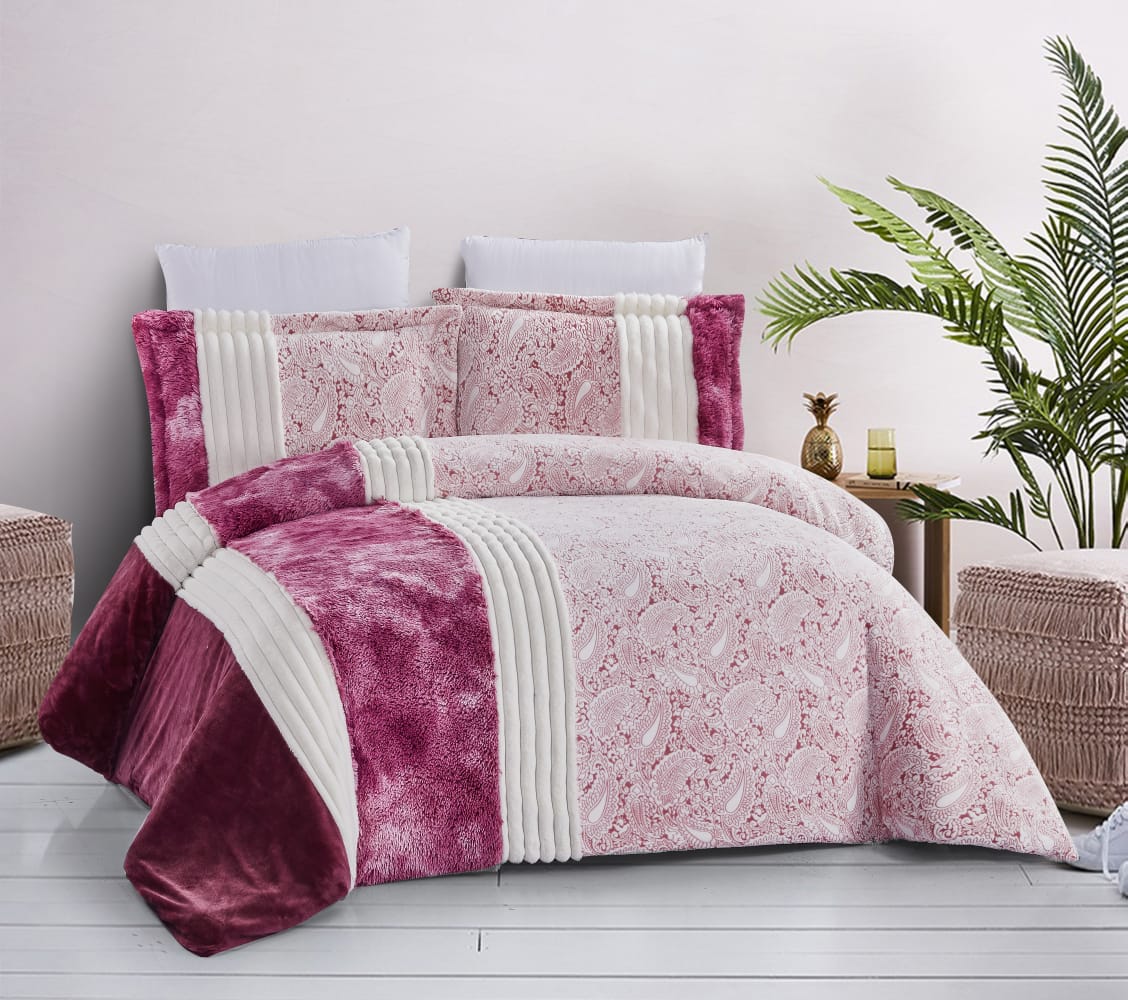 Faux rabbit fur comforter set