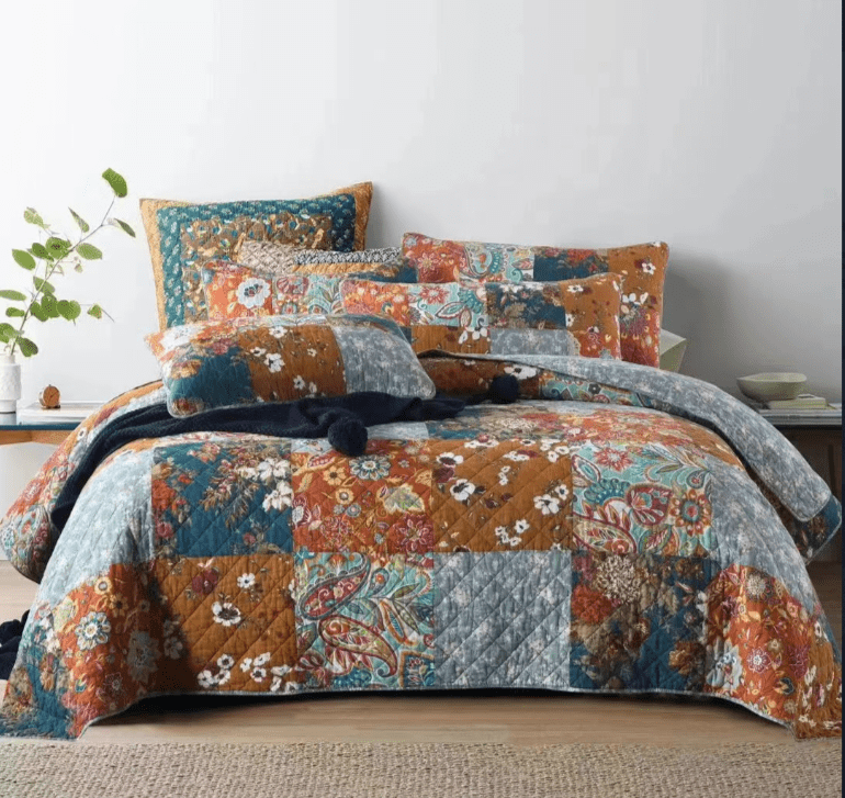 Paisley vintage floral rustic patchwork bedspread set