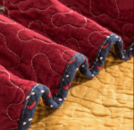 Combines Burgundy and mustard with hues of blue, gray and beige.