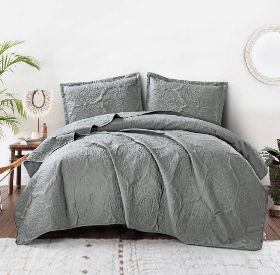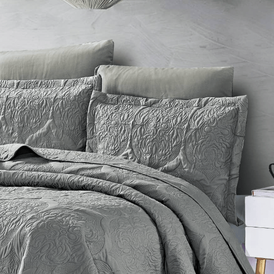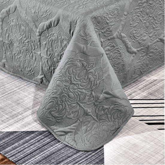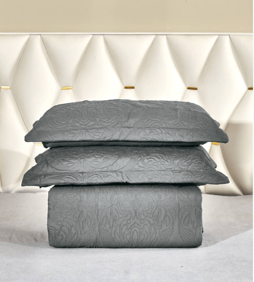 Elevate your bedroom with this elegant charcoal gray 3-piece bedcover set, symbolizing calmness and assertiveness. Available in 4 sizes to fit 3×6, 4×6, 5×6, and 6×6 beds. Prices start at Kes. 3,500. Perfect for adding a touch of sophistication and comfort to your space. Order now for premium quality and style!